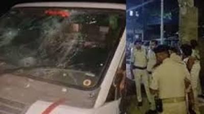 ग्रामीणों ने बीच सड़क पर पुलिस गाड़ी रोककर किया हंगामा