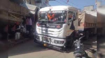 आधी रात गूगल मैप ने भटकाया, संकरी गली में फंसा ट्रेलर