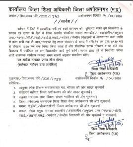 यह आदेश आगामी निर्देश तक प्रभावी रहेगा। आदेश के अनुसार, सभी शासकीय और निजी विद्यालयों में कक्षाओं का संचालन नए समय के अनुसार किया जाएगा। परिस्थितियों को देखते हुए आगे भी आवश्यक बदलाव किए जा सकते हैं। अशोकनगर में स्कूल सुबह 7:30 बजे से 12:30 बजे तक संचालित होंगे। इसके अलावा दोपहर 01:30 बजे तक स्कूल स्टाफ अन्य आवश्यक कार्य करेंगे।