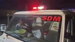 एसडीएम और पुलिस की गाड़ियों में तोड़फोड़